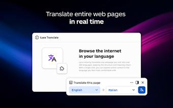 Lara es una extensión gratuita para Chrome que ofrece un servicio de traducción impulsado por inteligencia artificial, permitiendo traducir fácilmente más de 200 idiomas. Con su panel lateral inteligente y un widget contextual, los usuarios pueden obtener traducciones precisas y naturales con solo un clic. Esta herramienta es ideal para quienes navegan por contenido internacional o necesitan asistencia en la redacción de correos electrónicos y publicaciones en redes sociales.